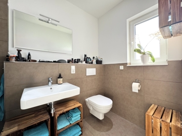 Mit direktem Zugang auf die große und sonnige Terrasse sowie in den weitläufigen Gartenbereich werden keine Wünsche offen bleiben. Abgerundet werden die Wohnräume im Erdgeschoss von einem geräumigen Gäste-/Arbeitszimmer und einem modernen Dusch-Bad.