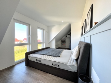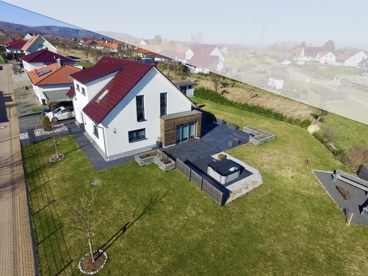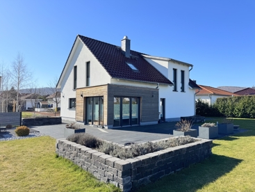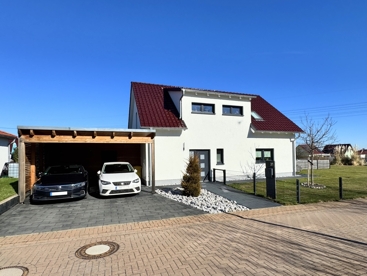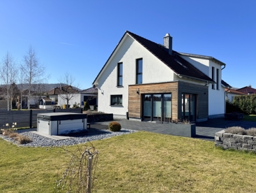 Dieses moderne und gehoben ausgestattete Einfamilienhaus wurde 2018 fertiggestellt und bietet Ihnen höchsten Wohnkomfort auf einer großzügigen Wohnfläche von ca. 164m². Die durchdachte Architektur und Grundrissgestaltung sorgen für eine optimale Raumnutzung und eine angenehme Wohnatmosphäre. Dank hochwertiger Bauweise mit dreifach verglasten Fenstern sowie einer zeitgemäßen Fassaden- und Dachdämmung ist das Haus besonders energieeffizient. Die moderne Wärmepumpentechnik in Kombination mit einer Fußbodenheizung sorgt für ein behagliches Wohnklima zu jeder Jahreszeit. Insbesondere im Winter schafft der stilvoll integrierte Kaminofen im Wohnbereich eine gemütliche Atmosphäre.