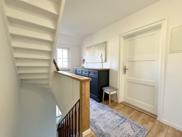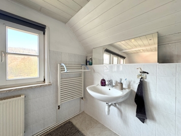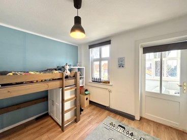 Im Obergeschoss stehen drei weitere Zimmer zur Verfügung, die sich flexibel als Schlaf-, Kinder-, Gäste- oder Arbeitszimmer nutzen lassen. Von hier aus eröffnet sich ein schöner Blick ins Grüne und auf das weitläufige Grundstück. Ein großzügiges Badezimmer mit Dusche und Badewanne komplettiert diese Etage und sorgt für zusätzlichen Wohnkomfort.