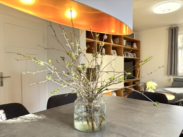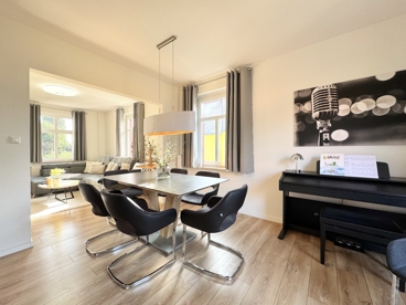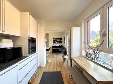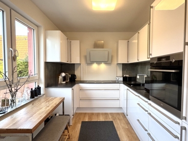 Bereits beim Betreten des Erdgeschosses entfaltet sich ein großzügiger und einladender Wohnbereich, der durch seine offene Raumgestaltung den Mittelpunkt des Hauses bildet. Große Fensterflächen lassen viel Tageslicht herein und schaffen eine freundliche, warme Wohnatmosphäre. Hier entsteht ein Lebensraum, der sowohl für entspannte Stunden im Alltag als auch für gesellige Momente mit Familie und Freunden ideal geeignet ist.