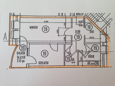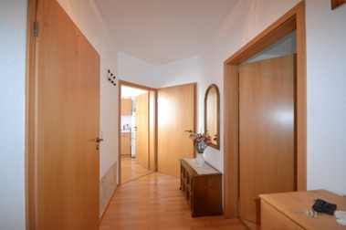 Durch den Eingangsbereich gelangt man zunächst in den großen Wohnbereich, mit direktem Zugang zum sonnigen Balkon. Angrenzend an das Wohnzimmer befindet sich das helle Schlafzimmer. Über den Flur gelangt man in die geräumige Küche, sowie in das tagesbelichtete Duschbad. Das gesamte Haus und die Außenanlagen werden ständig gepflegt und instand gehalten. Die Wohnung wird über Fernwärme geheizt.