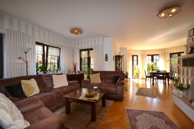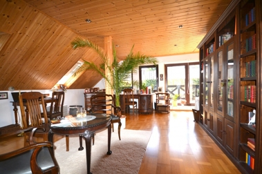 Das Haus verfügt bislang über 5 Zimmer verteilt auf ca. 202 m² Wohnfläche, die sich durch ihre Größe auch auf 6 Zimmer erweitern lassen. Im Erdgeschoss des Hauses gelangen Sie von der offenen Diele aus in das großzügige Wohn- Esszimmer, welches mit seinen Fensterfronten, dem Kachelofen und dem Zugang zur Terrasse, eine warme und freundliche Wohlfühlatmosphäre schafft . Von hier aus haben Sie einen schönen Blick in den idyllisch angelegten Garten mit Gartenteich. Die Terrasse, sowie das 1025 m² umfassende Grundstück bieten Ihnen genügend Platz, um die ein oder anderen Grillabende mit Freunden oder der Familie zu verbringen und nach einem stressigen Tag wieder Kraft zu sammeln. Weiterhin befinden sich im Erdgeschoss die Küche mit Einbauküche, von der Sie ebenfalls den Gartenbereich erreichen können, ein Schlaf- bzw. Kinderzimmer, die Garderobe und eine Gästetoilette.