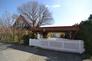 Das umlaufende Grundstück wurde auf 695 m² unter anderem mit einem kleinen Gartenteich idyllisch angelegt. Zwei Hauswirtschaftsräume, sowie eine Garage befinden sich in dem massiv gebauten Nebengebäude. Durch ein weiteres großes Carport, stehen insgesamt 2 überdachte Stellplätze zur Verfügung.