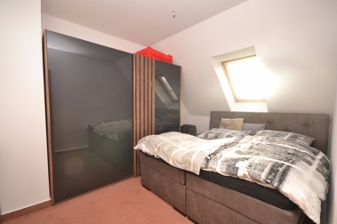Den Zugang dafür erhalten Sie vom ca. 20m² großen Wohnzimmer, dass durch eine Gaube ergänzt wurde und in Kombination mit der Terrassentür genügend Licht für eine angenehme Atmosphäre bereitstellt.