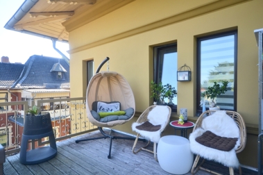 Objektbeschreibung Diese herrschaftliche 3,5-Zimmerwohnung befindet sich im Obergeschoss einer traumhaften italienischen Villa. Das Objekt liegt umgeben von einem idyllischen Grundstück im schönen Villenviertel von Blankenburg und besteht aus zwei Wohneinheiten.