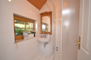 Weiterhin befindet sich im Erdgeschoss ein komfortables Gäste- oder Arbeitszimmer, an das ein tagesbelichtetes Duschbad angegliedert ist. Komplettiert wird die untere Etage von einem praktischen Hauswirtschaftsraum und einem separaten Gäste-WC.