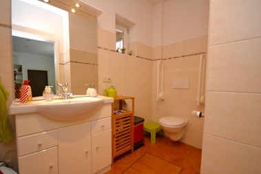 Über einen imposanten Eingangsbereich gelangt man in eine großzügige Empfangshalle. Die im Erdgeschoss befindlichen Räume bietet einen Anmelde- und einen Wartebereich, zwei Sprechzimmer und einen Funktionsraum, ein behindertengerechtes WC und ein Personal-WC sowie einen Aufenthaltsraum mit Küchenzeile.