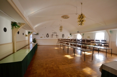 Eine gute Basis für die Beherbergung der Gäste stellt Ihnen das Obergeschoss bereit, in dem ein über 100m² großer Saal und zwei bereits entstandene Zimmer seinen Platz finden.