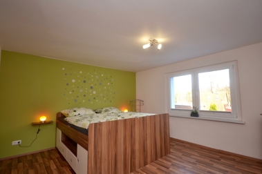 Im Erdgeschoss, des 1980 errichteten Hauses, befindet sich ein schöner Wohnbereich mit Blick in den Garten, die gemütliche Küche mit Sitzecke sowie ein Duschbad. Das Obergeschoss hält zusätzlich ein Schlafzimmer und ein Kinderzimmer bereit, die von einem weiteren tagesbelichteten Badezimmer ergänzt werden. Als Nutzfläche befindet sich außerhalb der Wohnräume noch ein großer Abstellraum, sowie der Heizungsraum.