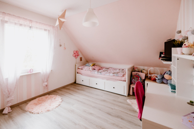 Weiterführend befinden sich im ausgebauten Dachgeschoss, zwei schöne Kinderzimmer, sowie das Elternschlafzimmer und ein tagesbelichtetes Hauptbad, welches mit einer Dusche und einer Badewanne ausgestattet ist.