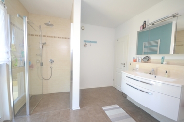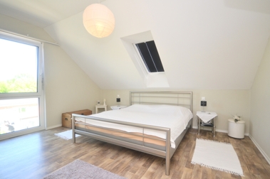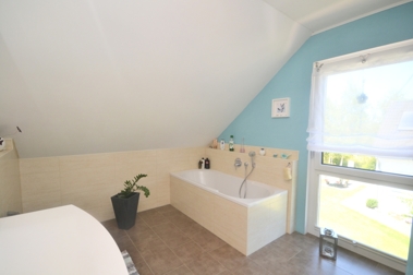 In dem voll ausgebauten Dachgeschoss befinden sich weiterführend drei große und helle Schlaf- bzw. Kinderzimmer sowie das tagesbelichtete Hauptbad, welches sowohl über eine ebenerdige Dusche als auch über eine komfortable Badewanne verfügt.
