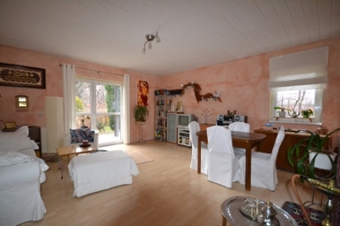 Das Erdgeschoss verfügt über ein sehr großzügiges Wohnzimmer mit Zugang zur Terrasse und dem Garten.