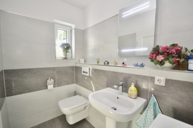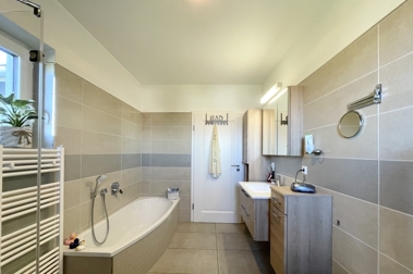 Ergänzt werden das Wohnzimmer sowie die Küche von einem komfortablen Schlafzimmer sowie dem großzügigen Badezimmer mit ebenerdiger Dusche samt Badewanne und einem tagesbelichteten Gäste WC.