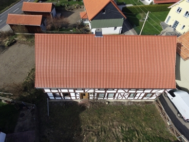 Im Zuge der Sanierungsmaßnahmen müssen sämtliche Fachgewerke erneuert werden. Auch der Austausch von teilweise schadhaften Fachwerkbalken ist notwendig. Die Dacheindeckung erfolgte 2013 mit Tonziegeln.