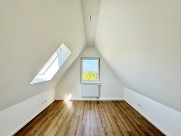 In der oberen Wohnebene erwarten Sie ein weiteres Schlafzimmer sowie ein Arbeits- oder Gästezimmer und eine kleine Spiel- / Abstellecke, die das Raumangebot für die Kleinen ideal ergänzen.