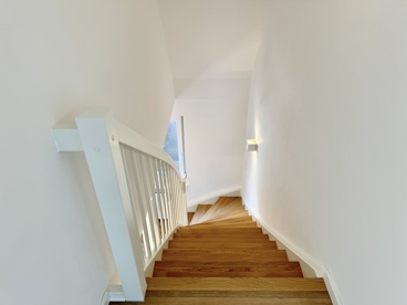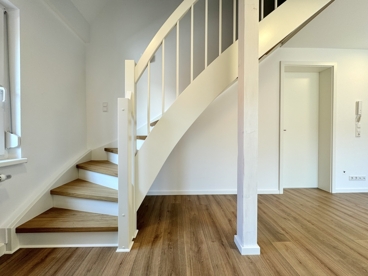 Das gepflegte und dezent gestaltete Treppenhaus führt in die helle und moderne Wohnung, die im September 2024 umfassend saniert wurde. Die gesamte Wohnung ist mit einem modernen Fußboden ausgestattet, wurde frisch gestrichen und verfügt über komfortable Rollläden, von denen einige sogar elektrisch bedienbar sind.