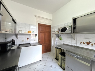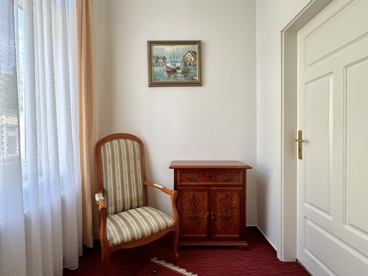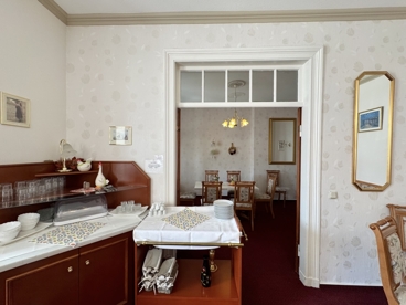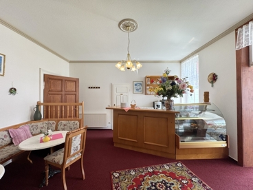 Im Erdgeschoss der Pension befindet sich ein großzügiger Essbereich, der zuletzt als kleines Café genutzt wurde. Dieser Raum bietet ideale Voraussetzungen für einen Frühstücksservice oder eine Wiederaufnahme des Cafébetriebs – sowohl für Hausgäste als auch für externe Besucher. Ergänzt wird das Angebot durch eine voll ausgestattete Gastronomieküche, mehrere Abstell- und Nebenräume sowie einen großen Kellerbereich mit zusätzlichem Stauraum.