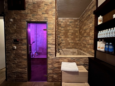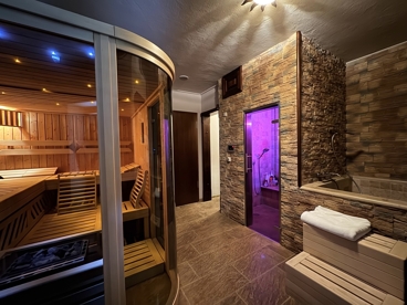• Hochwertiger Wellnessbereich: Finnische Sauna, Dampfsauna, Tauchbecken, WC
