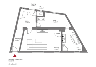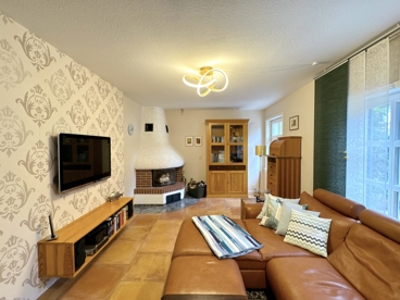 Schon beim Betreten des Hauses wird klar: Hier steckt Herzblut in jeder Ecke. Der Eingangsbereich führt in ein gemütliches Wohnzimmer, das mit einem stilvollen Kaminofen zu behaglichen Stunden einlädt. Die Fenster mit charakteristischen Schiebeläden sind ein charmantes historisches Detail, modern interpretiert und liebevoll in das Gesamtbild integriert. Ein angrenzendes Badezimmer, ein praktischer Hauswirtschaftsraum sowie ein separates Gäste-WC – ideal platziert nahe dem Gartenausgang – unterstreichen die Alltagstauglichkeit dieser Ebene.