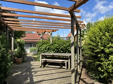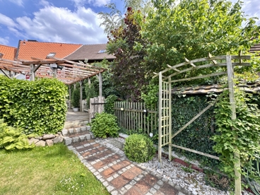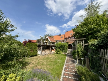 Der kleine, aber wunderbar angelegte Garten rundet das Gesamtbild ab – ein Ort zum Durchatmen, zum Entspannen und Genießen. Hier findet sich nicht nur Raum für gemütliche Stunden im Grünen, sondern auch ein weiteres Highlight: ein separates Gartenhäuschen..