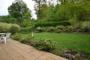 Die Erdgeschosswohnung selbst zeichnet sich durch ihre Großzügigkeit, den praktischen Grundriss und der Helligkeit mit Blick ins Grüne aus. Bodentiefe Fenster in Küche und Wohnzimmer bringen viel Licht in die Wohnung, schaffen ein angenehmes Ambiente und bieten Ihnen einen direkten Zugang auf die nach Süden ausgerichtete, zum Teil überdachte Terrasse. Der liebevoll angelegte Garten mit dem älterem Baumbestand bieten eine angenehme grüne Umgebung.