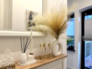 Beim Eintreten in die Wohnung befinden Sie sich gleich in der Diele, die mit ihrer Garderobe den Mittelpunkt der Wohnung darstellt.